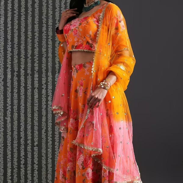 Gajra Gang by Fashion Bageecha Yellow Floral Skirt With Crop Top & Dupatta