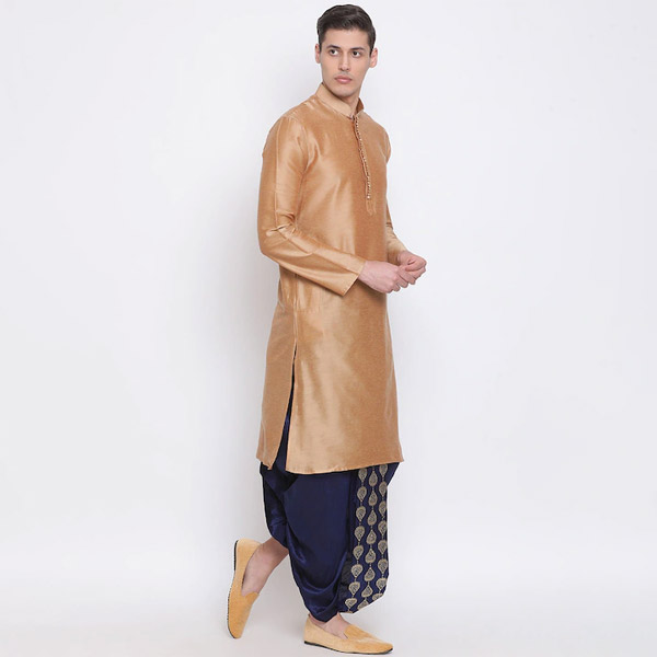 • Navy blue dhoti pants with intricate embroidery detailing, has an elasticated waistband with slip-on closure