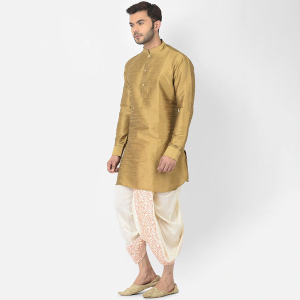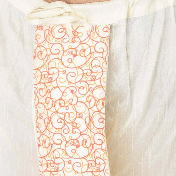 • Off white and orange printed dhoti with pleats, has a waistband with drawstring fastening