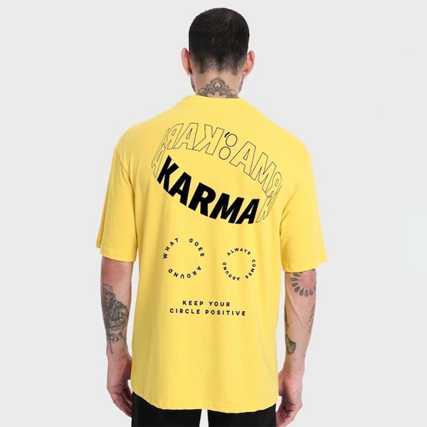 Men Yellow Typography Printed Drop-Shoulder Sleeves Loose Cotton T-shirt