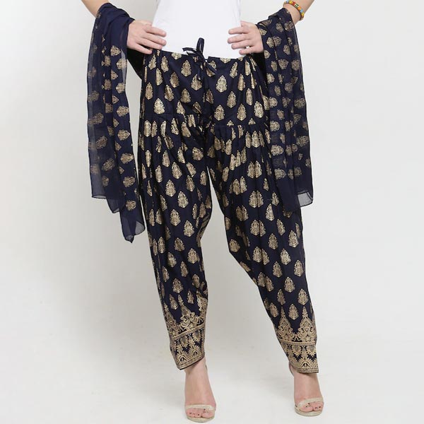 Women black & Gold-Toned Block Printed Salwar & Dupatta Set