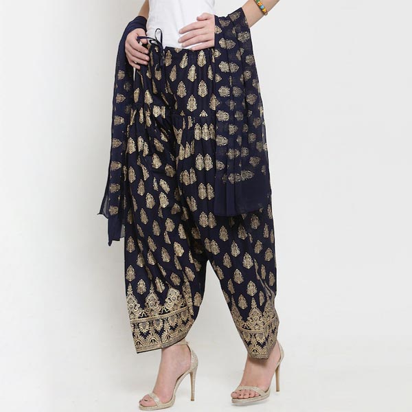 black and gold-toned printed salwar and dupatta set