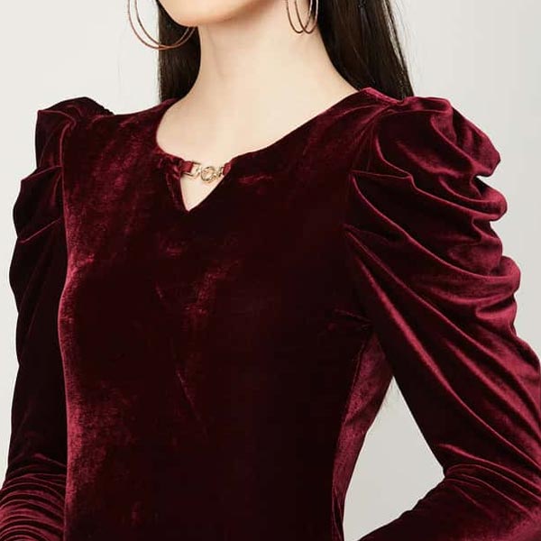 Amp up your style with this bodycon dress, beautifully detailed with a solid tone, 3/4th sleeves, embellished keyhole neckline, and slim fit. Disclaimer: Please check the size guide before you buy. You may need one size bigger than other popular brands. (If you usually fit into Size S of other popular brands you may need Size M).